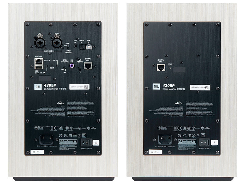 Uno dei punti di forza delle JBL 4305P è la loro natura di sistema audio completo. Integrano Google Chromecast built-in, Apple AirPlay 2, Bluetooth e supportano audio ad alta risoluzione fino a 24-bit / 192 kHz tramite collegamento digitale tra i diffusori. La potenza complessiva è di 300 W in Classe D, pari a 150 W RMS per diffusore con ripartizione 25 W per il driver HF e 125 W per il woofer LF. Non manca una sezione connessioni molto versatile, con ingressi XLR / ¼" combo, 3,5 mm stereo, USB-B asincrono e Toslink/Optical, oltre all’uscita subwoofer con attivazione automatica del filtro passa-alto a 80 Hz.