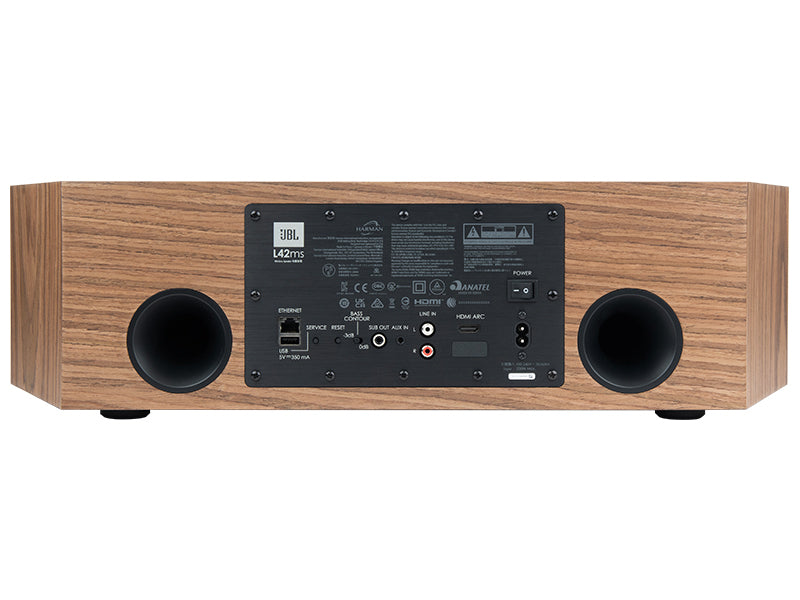 Il JBL L42ms offre una vasta gamma di opzioni di connettività, includendo WiFi, AirPlay 2, Google Chromecast e Bluetooth 4.2 per lo streaming wireless. Può inoltre essere collegato a dispositivi tramite ingressi fisici come RCA, ingresso da 3,5mm e HDMI con supporto ARC, che lo rende perfetto anche per l’utilizzo come soundbar con TV di grandi dimensioni.